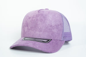 La gorra NISSI lila Gamuza con malla está confeccionada en 100% gamuza, ofreciendo una textura suave, elegante y resistente, ideal para personalización o uso directo.