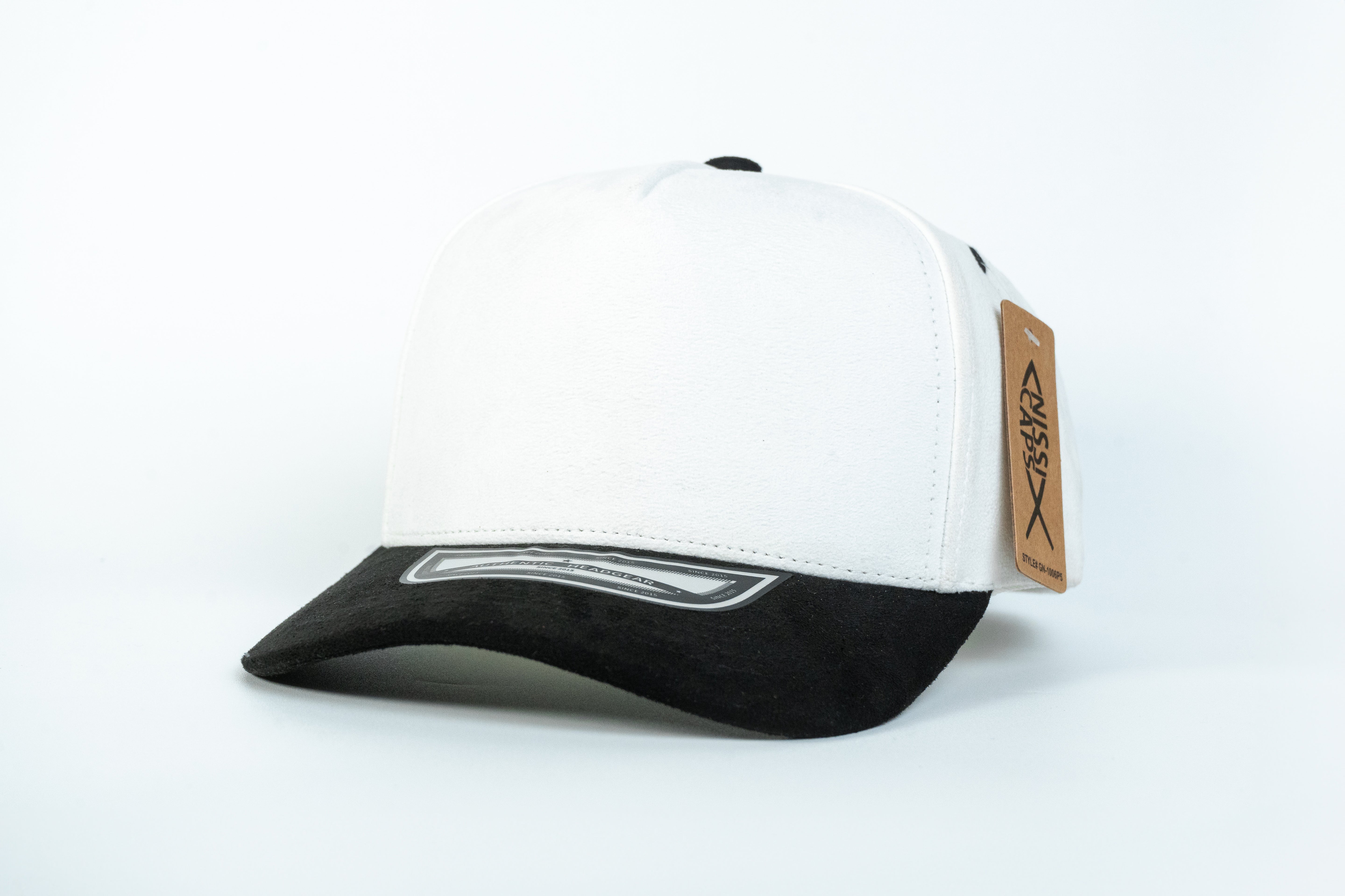 La gorra NISSI Black Gamuza está confeccionada en 100% gamuza, ofreciendo una textura suave, elegante y resistente, ideal para personalización o uso directo.