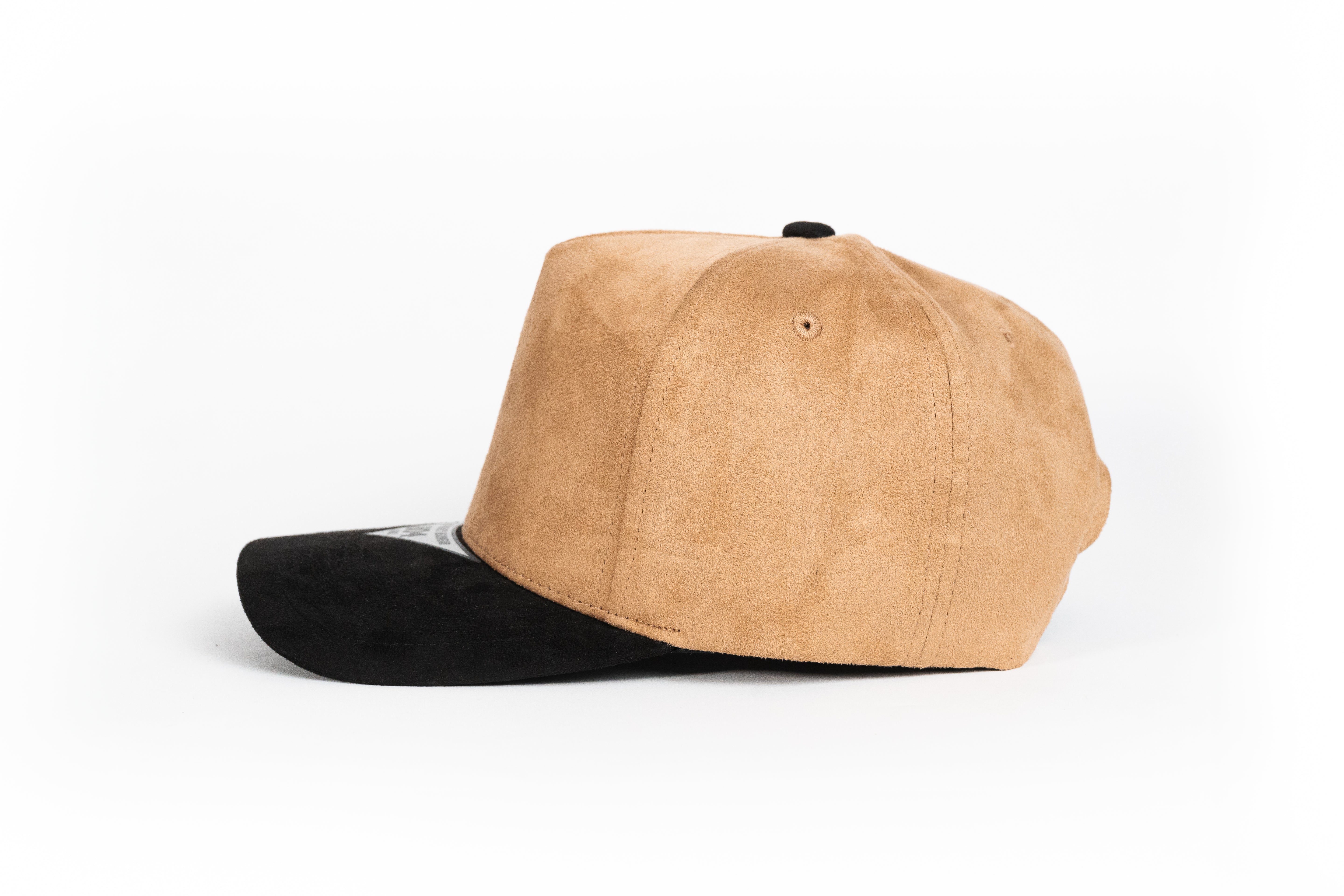 Fabricada en gamuza de alta calidad, ofrece una textura suave y resistente, mientras que la visera negra aporta contraste y carácter al diseño. Su construcción de 5 paneles brinda una silueta moderna y un ajuste limpio, ideal para marcas con identidad sólida.