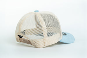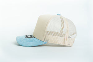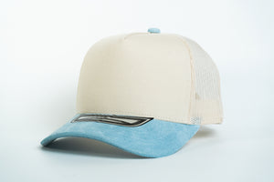 La gorra NISSI duo tono Gamuza con malla está confeccionada en tela de algodón, gamuza y malla, ofreciendo una textura suave, elegante y resistente, ideal para personalización o uso directo.