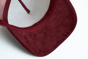La gorra NISSI Wine Gamuza con malla está confeccionada en 100% gamuza, ofreciendo una textura suave, elegante y resistente, ideal para personalización o uso directo.